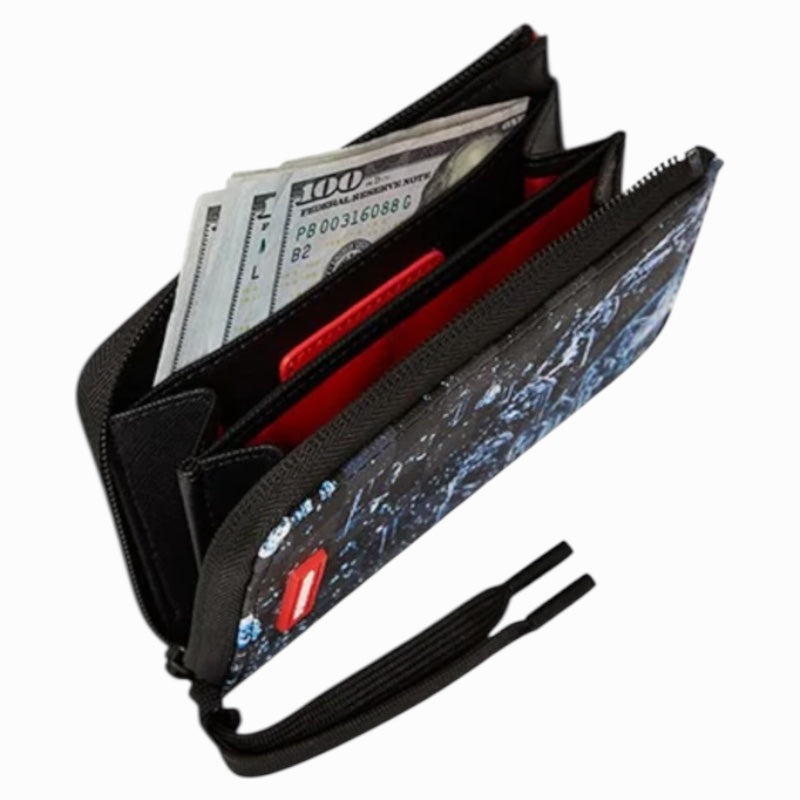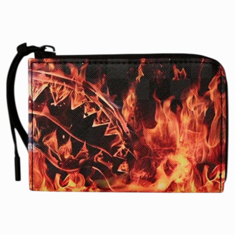 Sprayground portafoglio Fire & Ice grigio e nero realizzato in ecopelle vegana durevole e resistente.