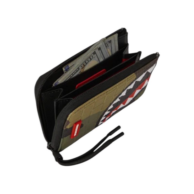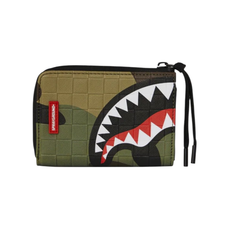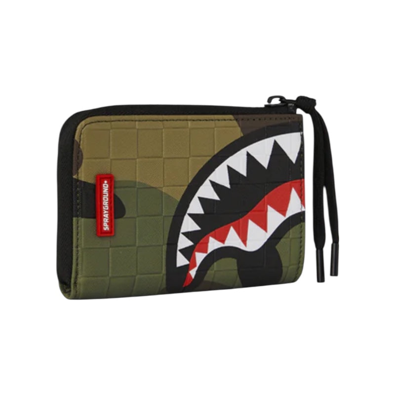 Sprayground portafoglio Woodland Camo Checko realizzato in ecopelle vegana durevole e resistente.