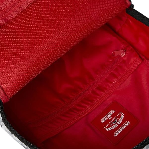 Sprayground zaino Red Stencil Shark bianco, realizzato in ecopelle vegana durevole e resistente.