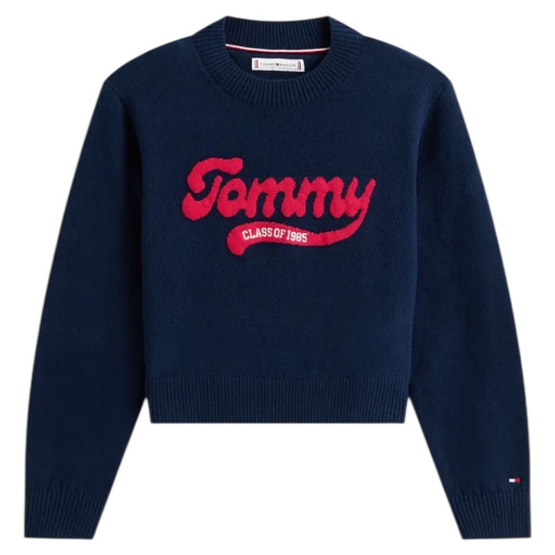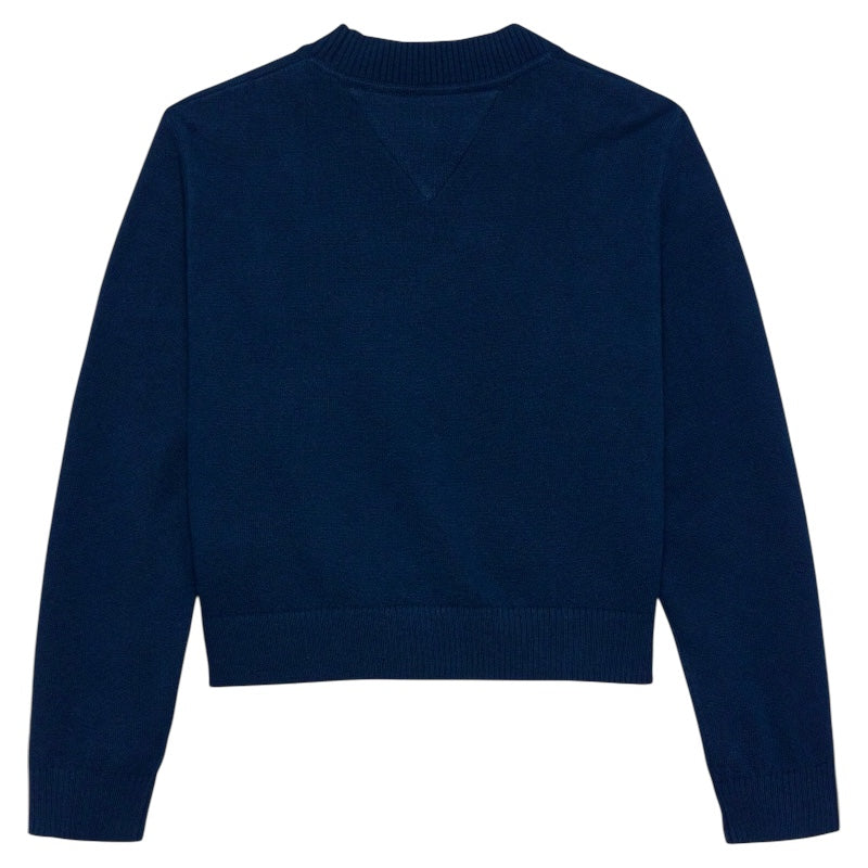 Tommy Hilfiger maglione blu a girocollo chiuso davanti, da ragazza.