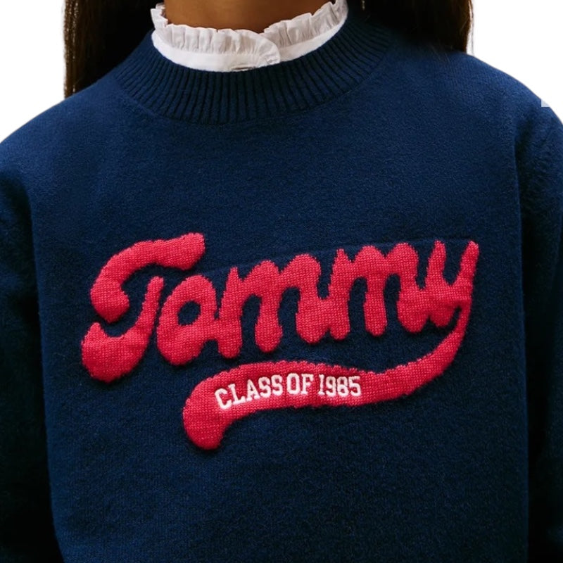 Logo Tommy rosso stile anni '80 intarsiato davanti.