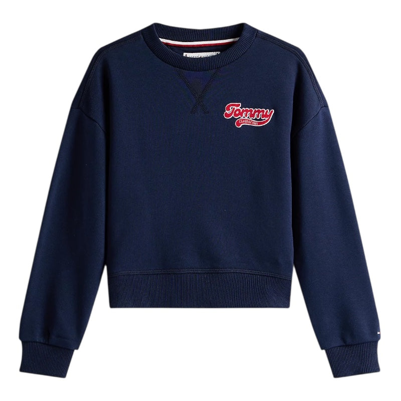 Tommy Hilfiger felpa blu a girocollo chiusa davanti, da ragazza.