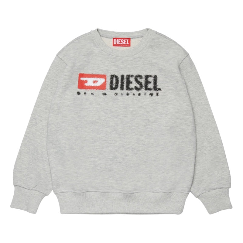 Diesel felpa a girocollo grigia chiusa davanti, unisex.