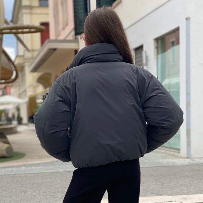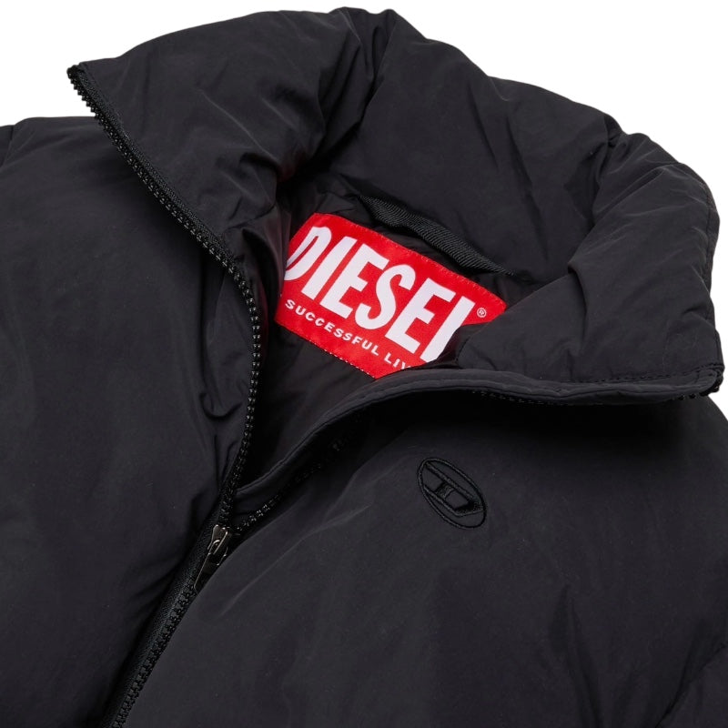 Diesel piumino corto nero in tessuto tecnino nero opaco, da ragazza.