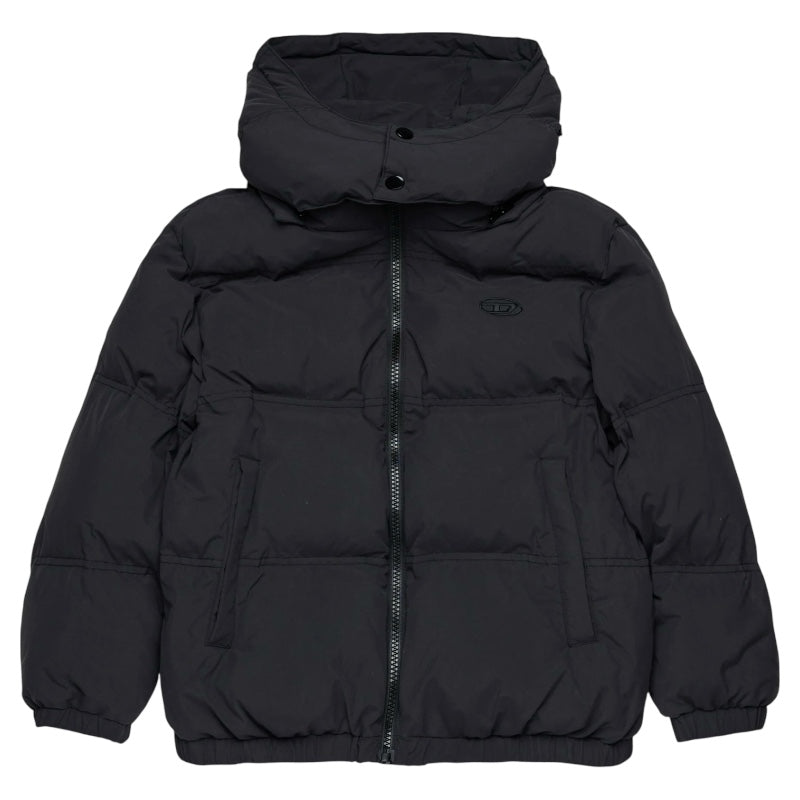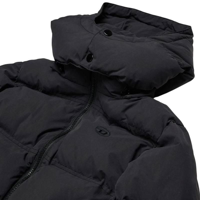 Diesel piumino nero in tessuto tecnino nero opaco, unisex.