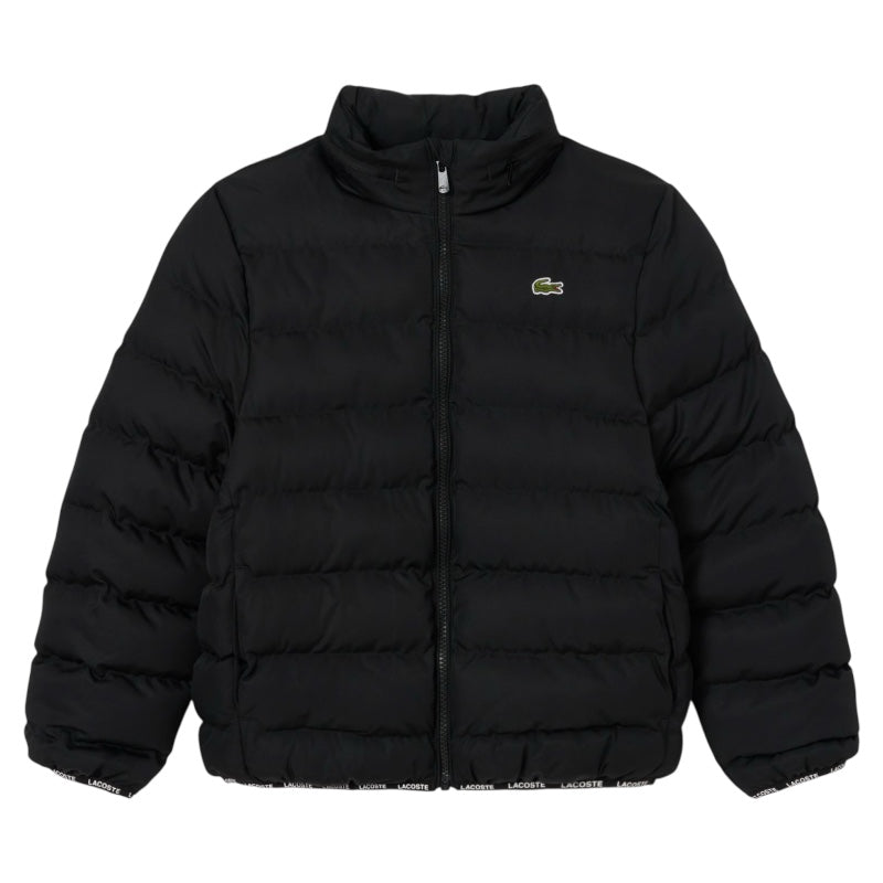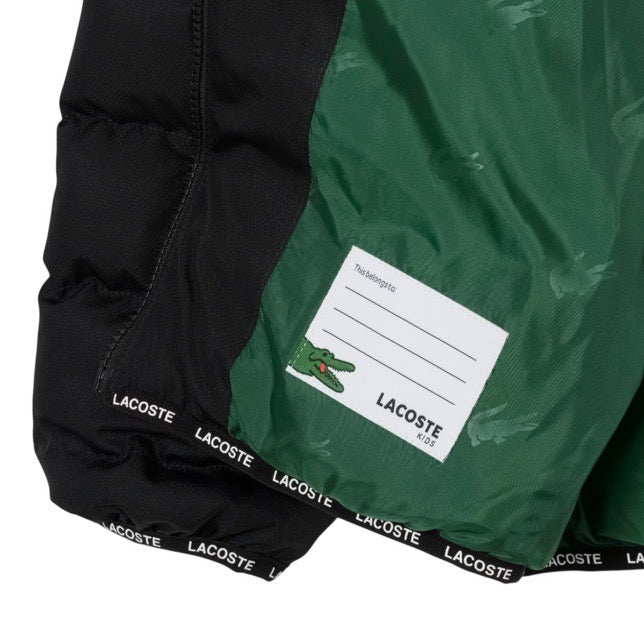 Coccodrillo Lacoste ricamato a lato. Tramatura del tessuto a piccoli rombi leggermente lucidi.