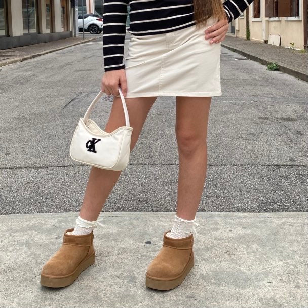 Calvin Klein gonna in tela di cotone beige corta, da ragazza.