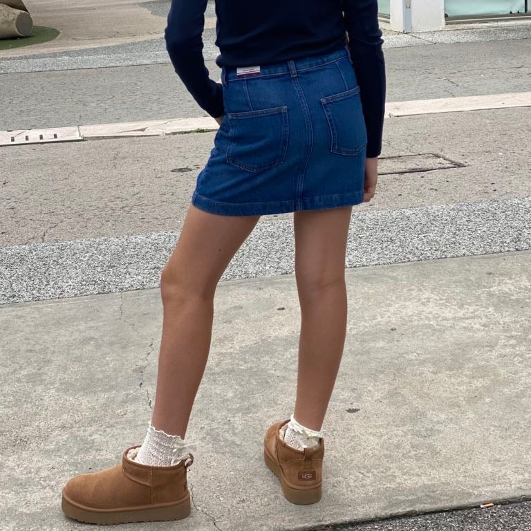 Tommy Hilfiger gonna corta in jeans blu scuro, da ragazza.