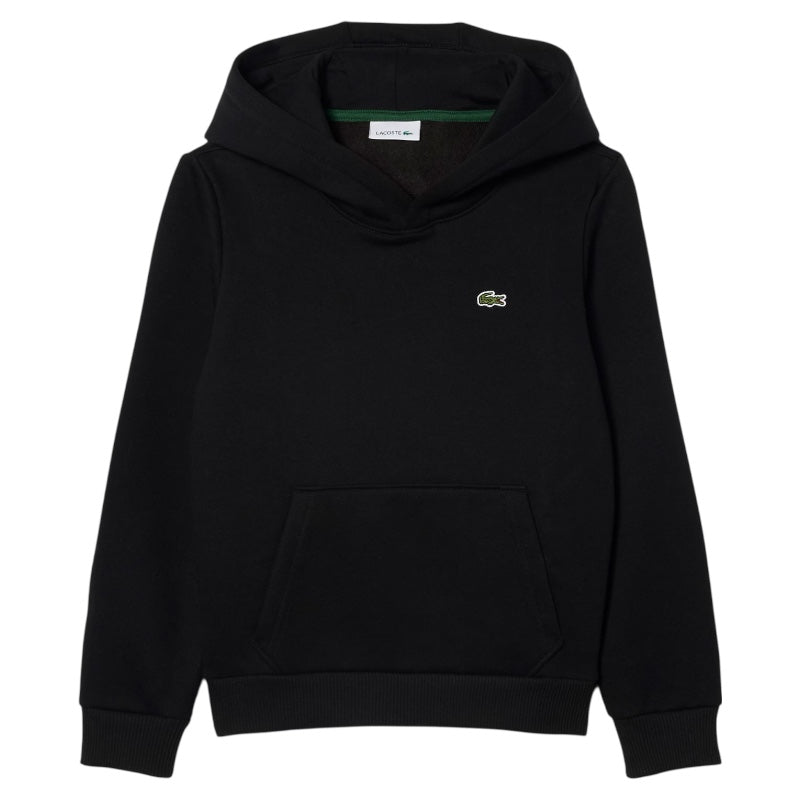 Lacoste kids felpa con cappuccio nera chiusa davanti, unisex.