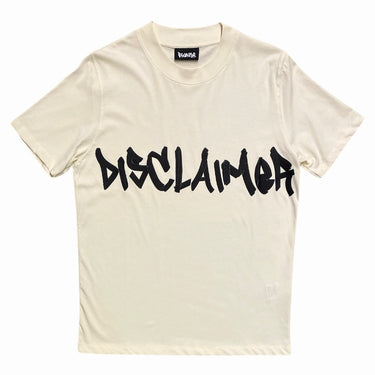 Disclaimer adult t-shirt crema a girocollo e maniche corte, unisex.
