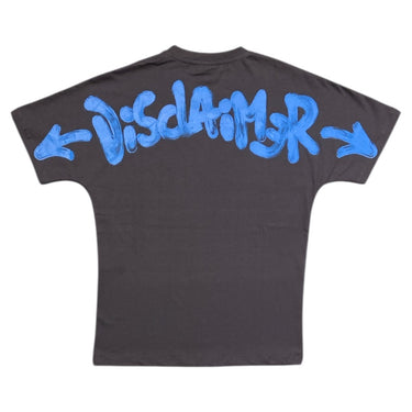 Logo Disclaimer azzurro in piccolo davanti. Maxi logo Disclaimer azzurro nel retro.