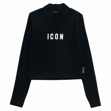 Icon kids t-shirt nera a girocollo e maniche lunghe, da ragazza.
