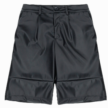 Imperial bermuda ragazza in ecopelle neri, caratterizzati da taglio svasato, tasche laterali a filo e dettaglio della cucitura a balza sul fondo, Made in Italy, collezione FW21