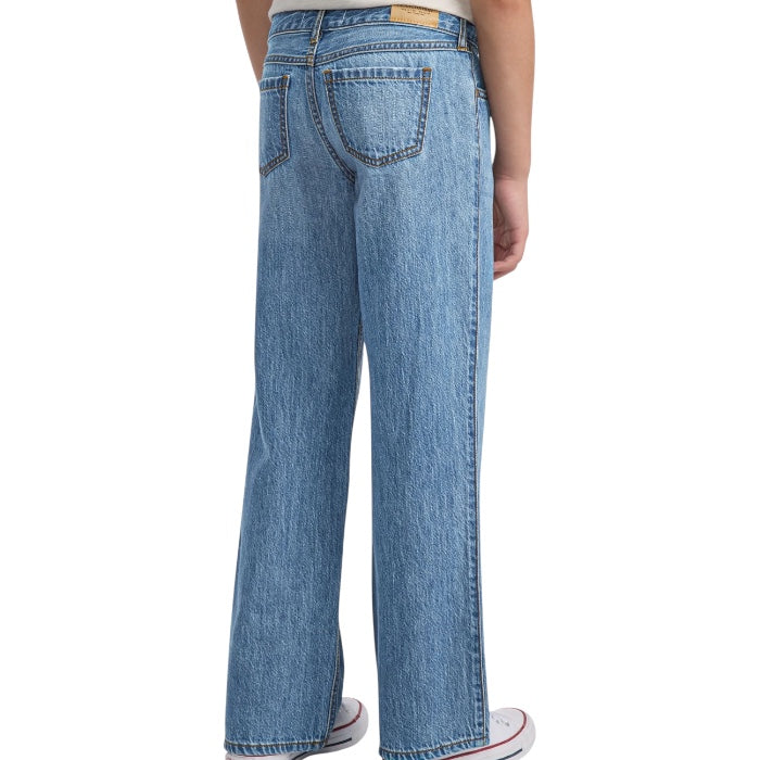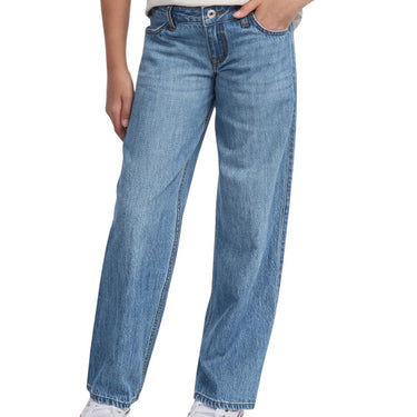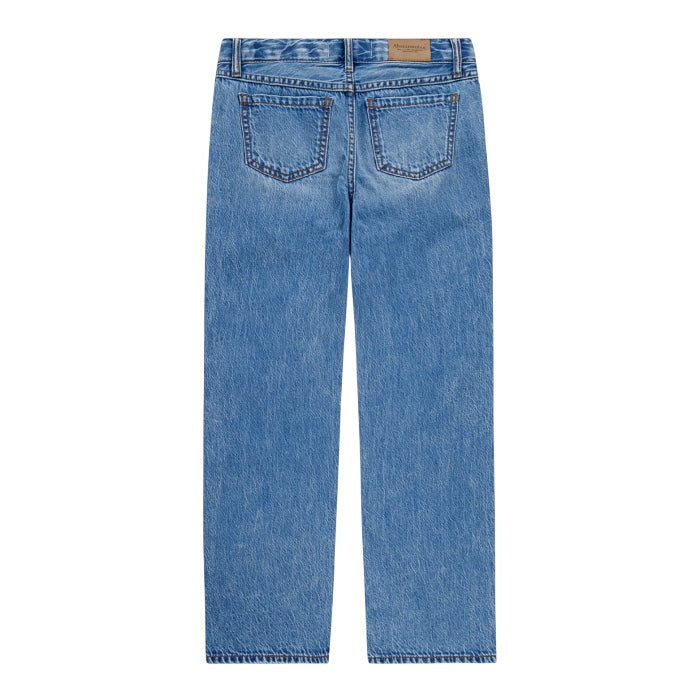 Abercrombie & Fitch jeans largo dal lavaggio blu medio, da ragazza.