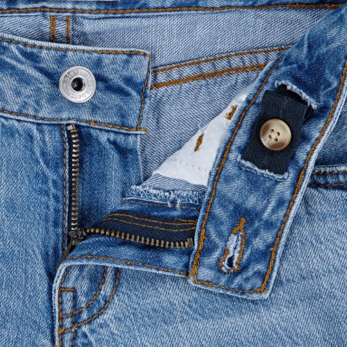 5 tasche tradizionali, chiusura con cerniera e bottone loggato.