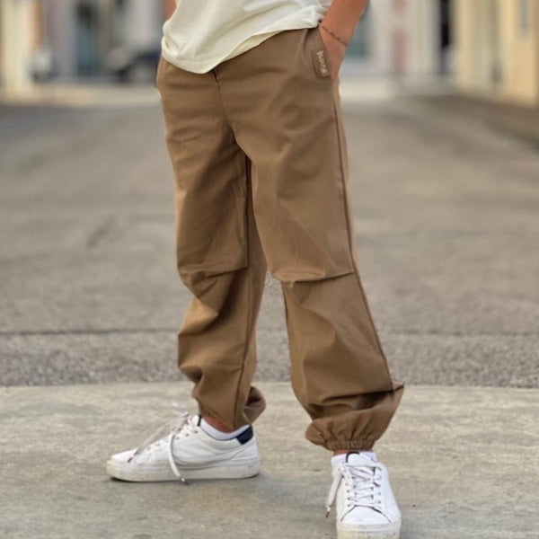 Disclaimer kids pantalone color biscotto in tela di cotone, da ragazzo.