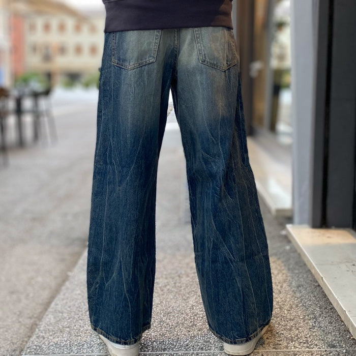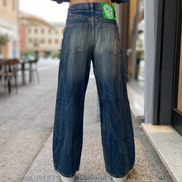 Modello a vita media, gamba molto larga che rimane dritta sul fondo.