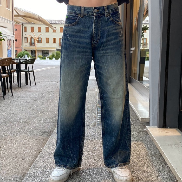 Cheap Monday jeans dal lavaggio blu medio, unisex.