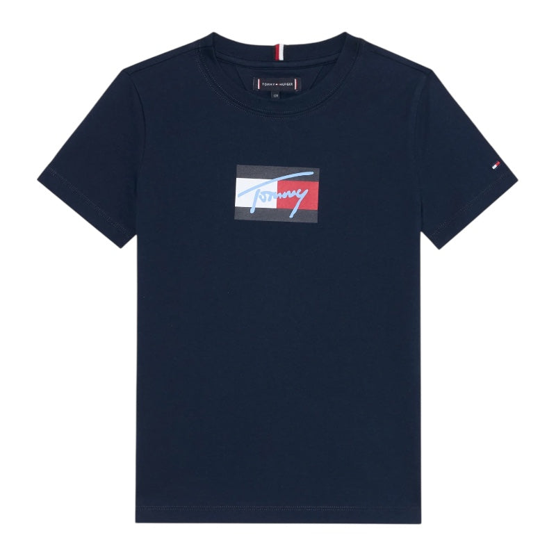 Nuovo logo con bandiera e scritta Tommy azzurra davanti.