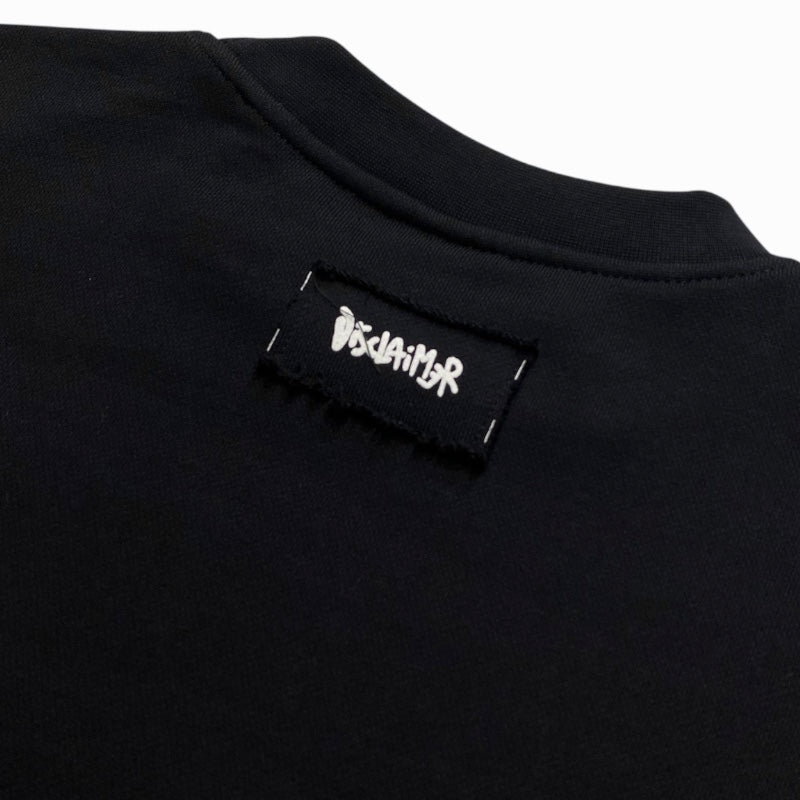 Disclaimer adult felpa nera a girocollo chiusa davanti, unisex.