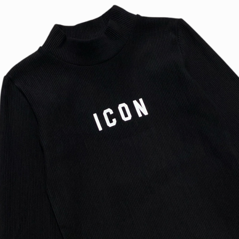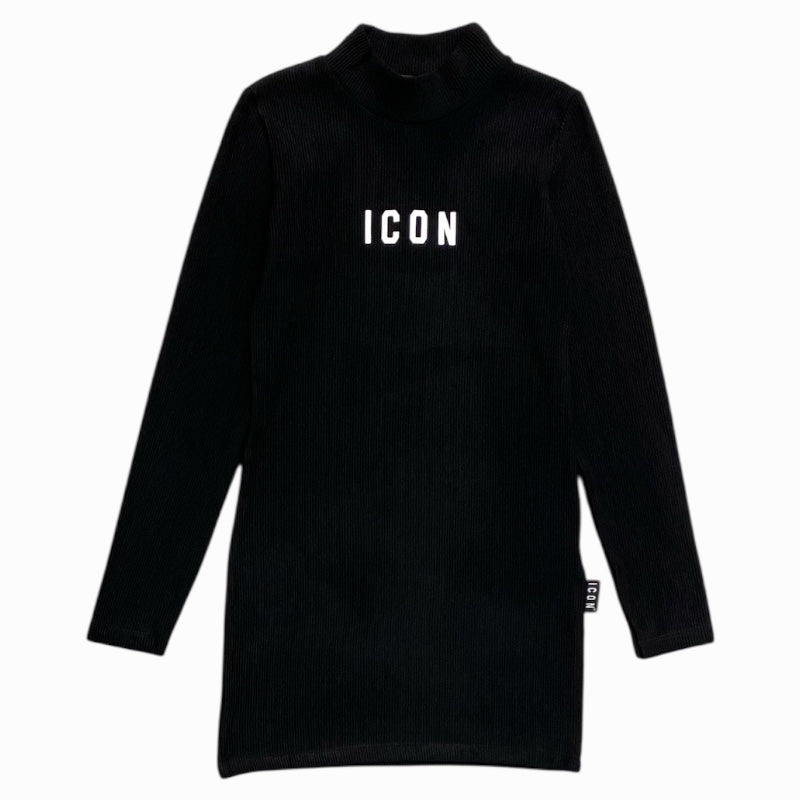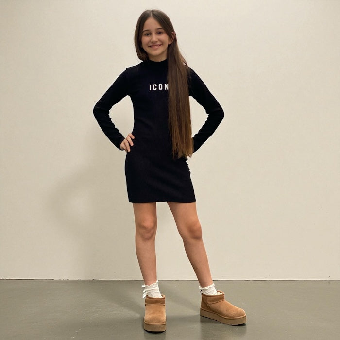 Icon kids abito nero a girocollo e maniche lunghe, da ragazza.