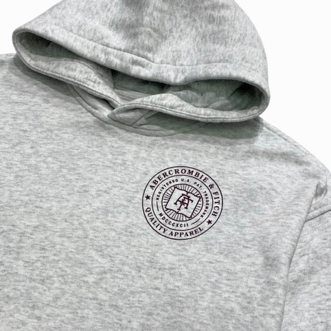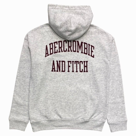 Abercrombie & Fitch felpa grigia con cappuccio chiusa davanti, unisex.