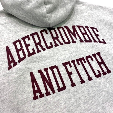 Logo Abercrombie & Fitch stile college davanti in piccolo e dietro in grande.