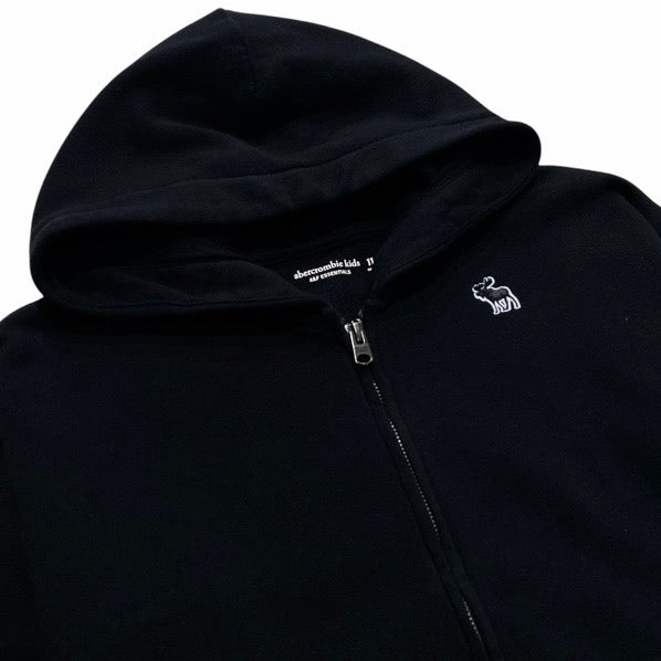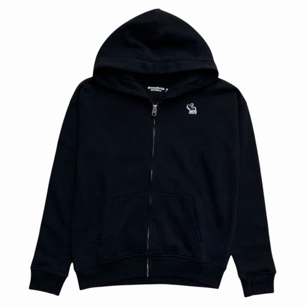 Abercrombie & Fitch felpa nera antrachite con zip e cappuccio aperta davanti, unisex.