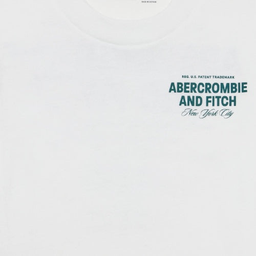 Logo Abercrobie verde bottiglia stampato in piccolo davanti e in grande nel retro.