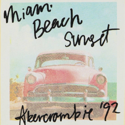 Logo Abercrobie e grafica con fotografia Miami Beach davanti.