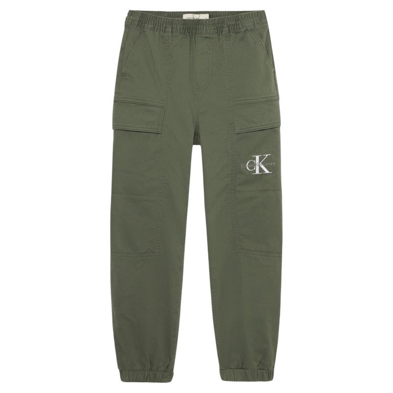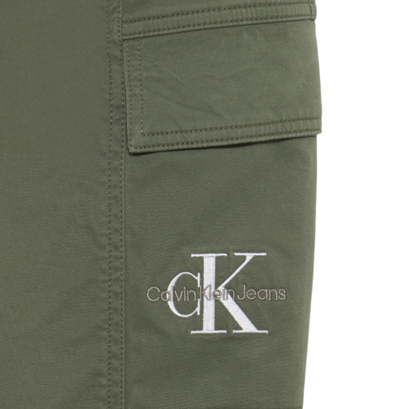 Calvin Klein cargo da ragazzo verde, in tela di cotone elasticizzata.
