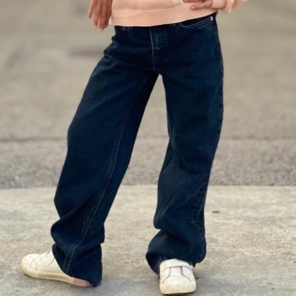 Jeans vita alta dalla gamba larga che rimane dritta sul fondo.