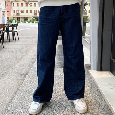 Modello a vita media, gamba molto larga che rimane dritta sul fondo.