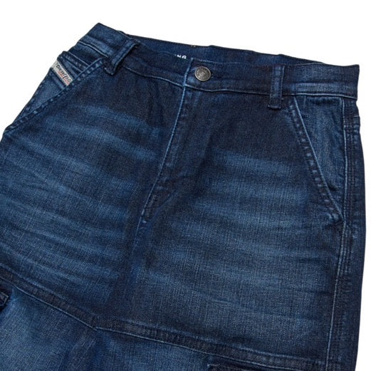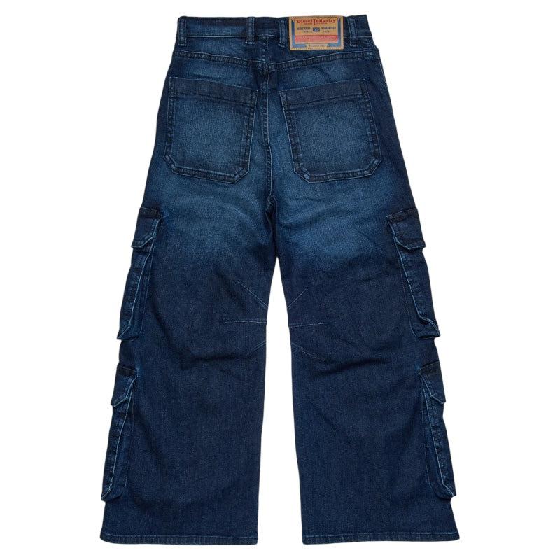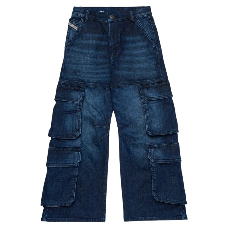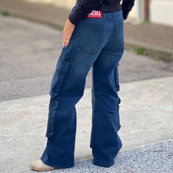 Cargo con doppio tascone laterale, gamba larga che rimane ampia sul fondo.