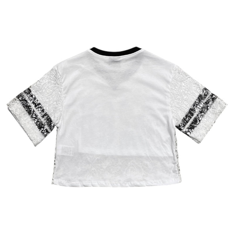 Disclaimer kids t-shirt bianca in pizzo, da ragazza.
