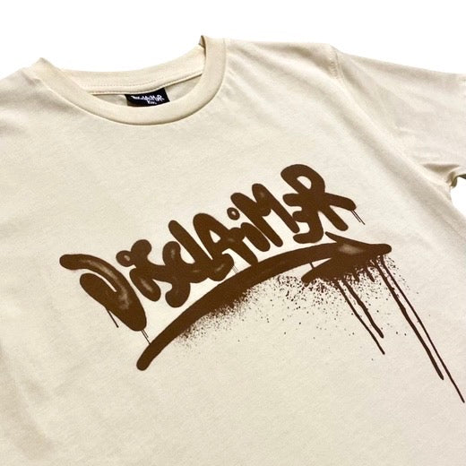 Logo Disclaimer color biscotto effetto spray in grande davanti.