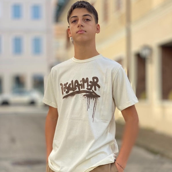 Disclaimer kids t-shirt crema a girocollo e maniche corte, da ragazzo.