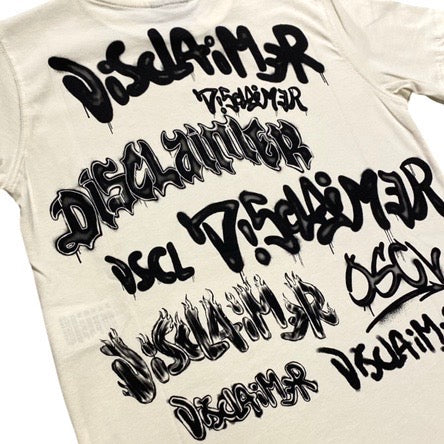 Logo Disclaimer nero in piccolo davanti. Multi loghi Disclaimer in varie fantasie nel retro