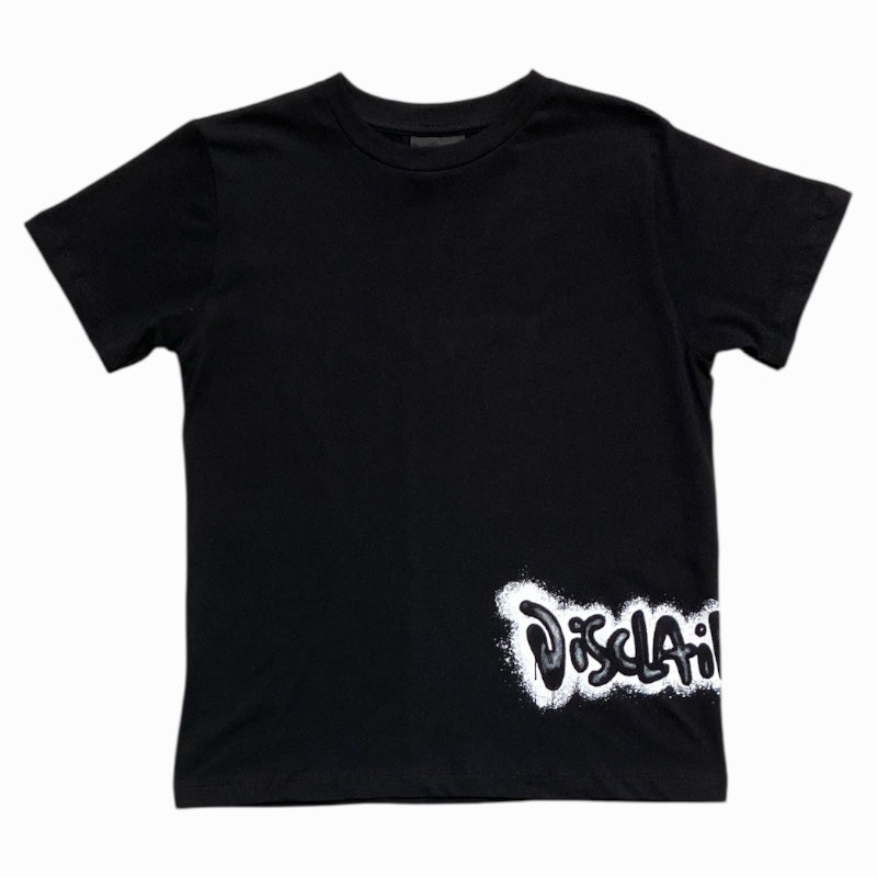 Disclaimer kids t-shirt nera a girocollo e maniche corte, da ragazzo.