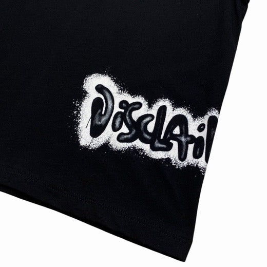 Logo Disclaimer bianco e nero effetto spray a lato.
