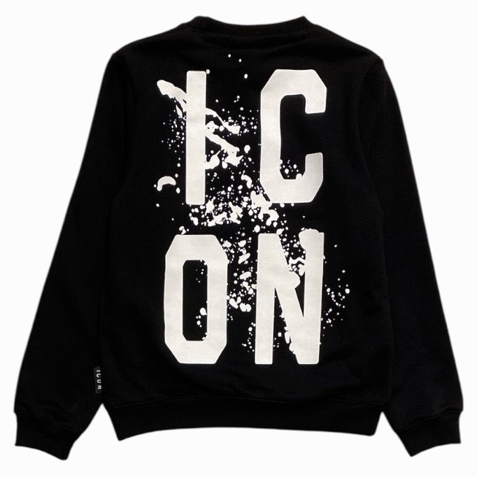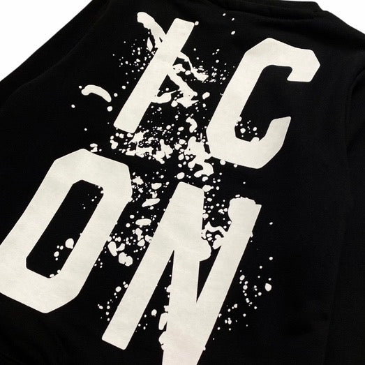 Logo Icon bianco stampato a lato. Maxi logo Icon bianco in fantasia macchie colore nel retro.
