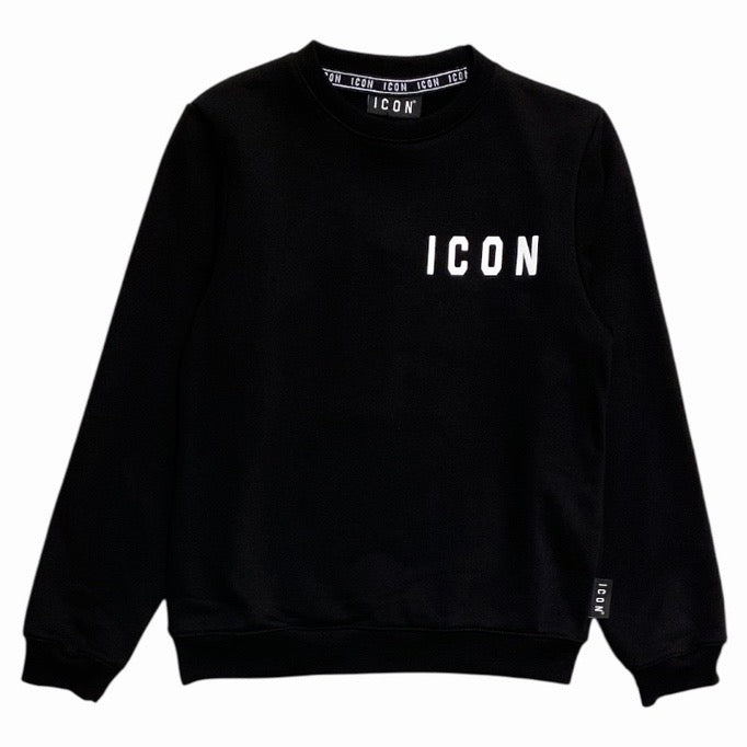 Icon kids felpa nera a girocollo chiusa davanti, unisex.