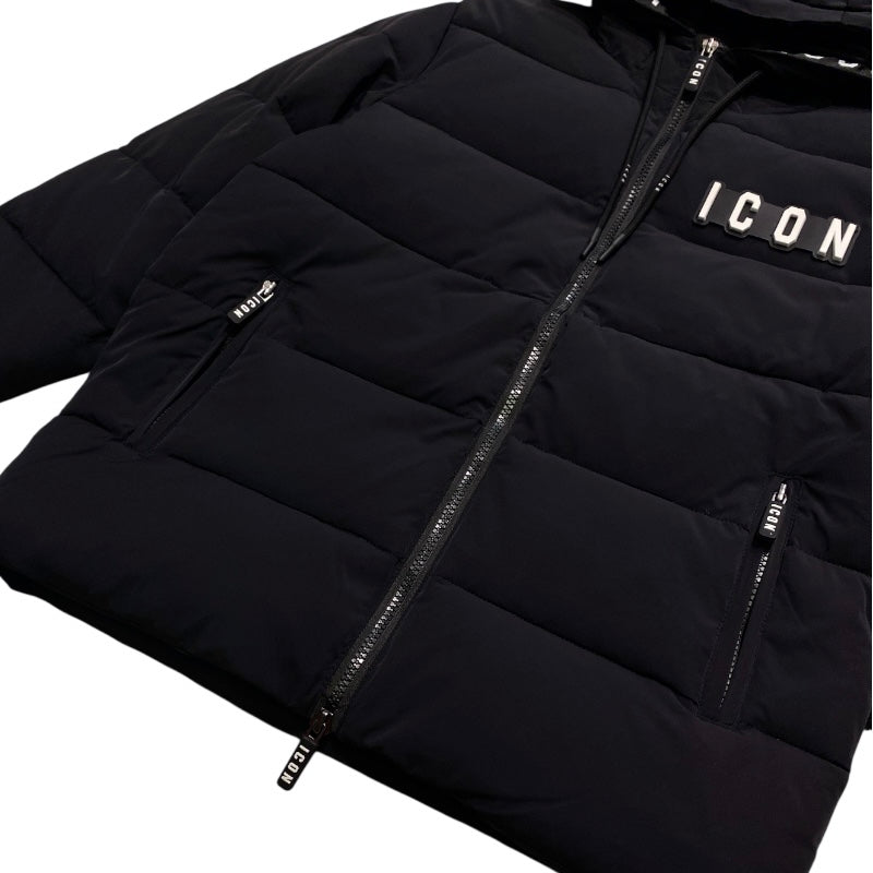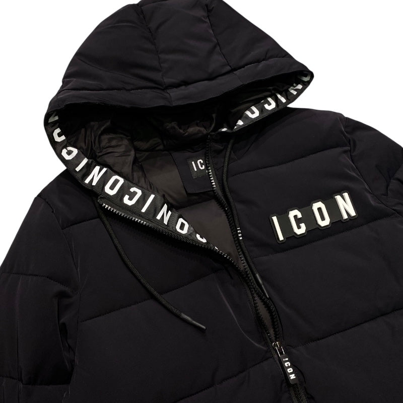 Icon kids piumino lungo nero basic logo 708