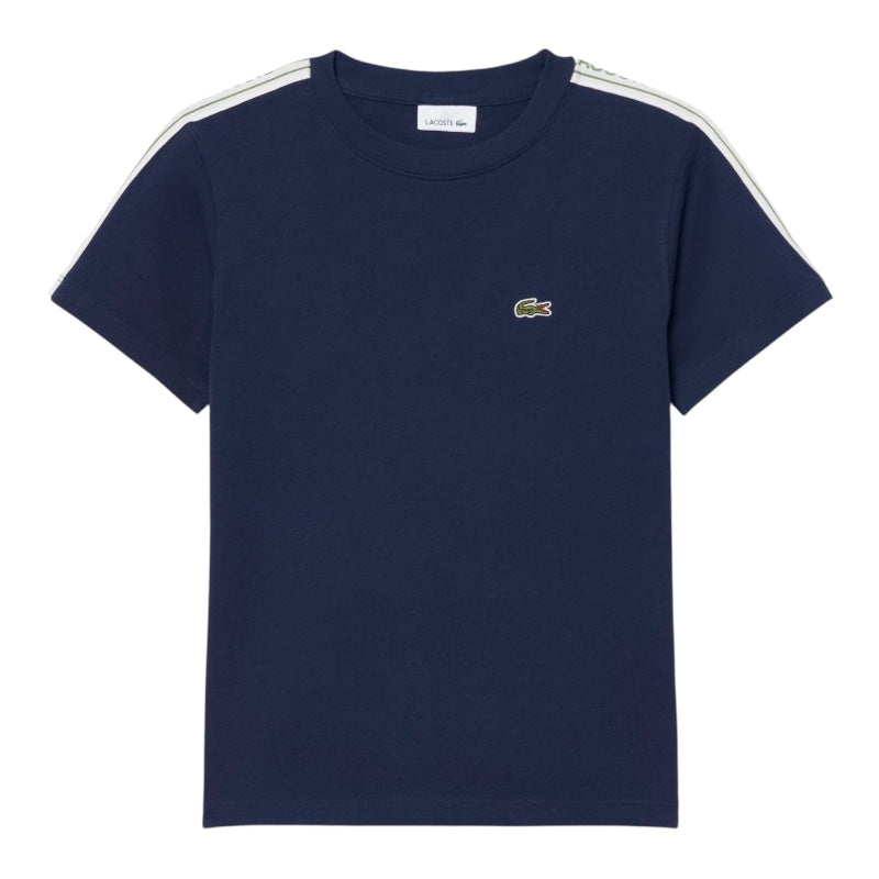 Lacoste kids t-shirt blu a girocollo con maniche corte, unisex.