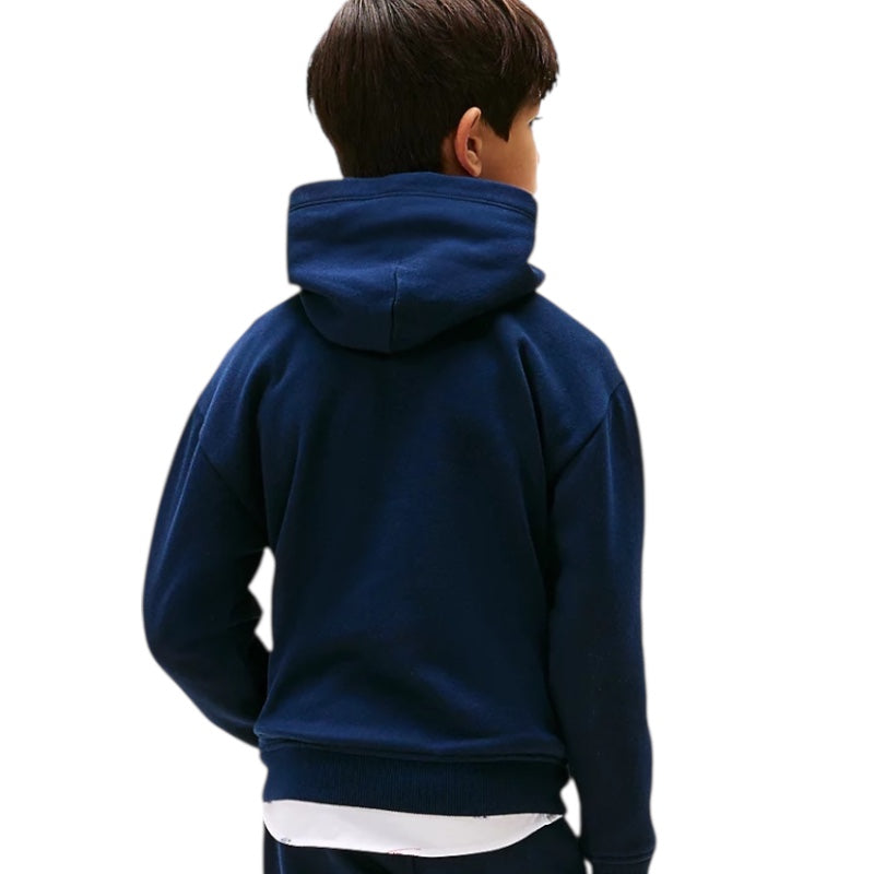 Tommy Hilfiger felpa blu con cappuccio chiusa davanti, unisex.