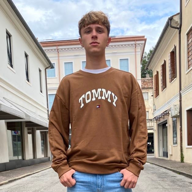 Tommy Hilfiger felpa marrone a girocollo chiusa davanti, unisex.