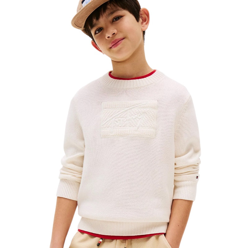 Tommy Hilfiger maglione panna logo ricamato KB0KB09810